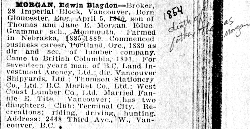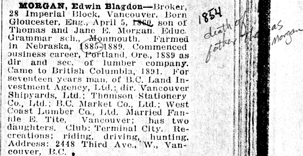 Blagdon Morgan Blagdon-Monument1-Honiton Blagdon-Monument3-Honiton cmncarmz-chapel-where-Miss-Blagdon-Baptized EX17130 EX17130 Honiton, Devonshire by Rowlandson, Thomas (1756-1827) Royal Albert Memorial Museum, Exeter, Devon, UK English, out of copyright John-Blagdon-tombstone John-Blagdon2 John-Blagdon3 Laura-Blagdon-Thomas Nathaniel-Thomas-minister-of-Tabernacl-Cardiff-1856-to-1887 OLYMPUS DIGITAL CAMERA OLYMPUS DIGITAL CAMERA Northcote-Inscription1-1793 Northcote3-1793 Blagdon-Silver-Family-Crest-Boddington Boddington-1970s-Connie Boddington-Church-1995 Boddington-Church3UK-Sep-2005 Boddington-Connie-Uncle-Don-1970s Boddington-Cottage Boddington-Manor-bw-early-1900s Boddington-Manor-by-Will-Sharp-1897a Boddington-Manor-c1820-D-Shutte2 Boddington-painting Boddington-The-New-British-Travlr-cover 1913-Blagdon-Cousins-Margate Blagdon-Neale-Phillips-family-people-1903 Blagdon5 Eva-Morgan-Phillips-grave-Fairmont-NE John-Phillips 1893-Edwin-B-and-Fannie-Tite-mrg-cert 1893-Vancouver-BC-EB-Morgans 1911-Whos-Who-in-Western-Canada-EB-Morgan 1894-Tite-Family-on-porch 1912-Morgan-picnic 1917ish-John-S-Morgan-and-Edwin-B-Morgan-Xmas-Oregon EB-Morgan-possibly-1870s-OR 1929-EB-Morgan-obit-The-Province-newsp-Sept16 1932-July-8-Seattle-Daily-Tms-Elsie-Morgan-Pettit-obit 38555d34-ff27-4564-b0f6-15bea5926c30-A35717 Army-band-Richard-Pettit-with-trombone-standing EB-Morgan-1909-postcard-shooting-club-vancouver EB-Morgan-ad-in-Canada-Illus-Weekly Fanny-Tite-Morgan-I-think-Vancouver-BC Edward-Blagdon-Morgan-bio-in-BC-book Edwin-and-Fannie-graves Eliza-Tite-Canada Elsie-Morgan-Pettit-1931 Elsie-Pettit-grave Fanny-Morgan-daughters-circa-1910a Fanny-Tite-Morgan-maybe2 Fanny-Tite-Morgan-Victoria-BC-ca-1890s Grandmother-Elsie-Pettit-Morgan-and-son-Richard-Dick1931 John-S-and-Uncle-Edwin-xmas-1920 John-S-Morgan-Edwin-and-family-Christmas-1890ish Mrs-S.-C.-Tite-and-John-Tite-1894-33-Dufferin-St. Richard-B-Pettit-1942 Samuel-Cooper-Tite Alma-Fain-Morgan-Portland-OR 1918-April-Gladys-Farmer-at-organ-Portland-auditorium 1928-Alma-Fain-Morgan-holding-Doris-Joan-Farmer 1928-Jones-Family-Reunion 1928-Jones-Farmer-Reunion 1959-March1-Oregonian-p35-Alma-Morgan-obit Alice-A-Fain-PDX-Grave-Copy Alma-Farmer-Dietz2 Alma-Morgan-and-son-Donald-WWI-soldier-1918 Aunt-Bertha Aunt-Laura Aunt-Mary-Wood Barbara-Jean-Morgan-Ellison-grave Bertha-Day Chet-Day Day-Sisters Doris-G-Morgan Eleanor-Fox-30June-1941-Oregonian-obit Elizabeth-Allen-Jones Emma-Day-2nd-from-left Emma-Day-far-right Emma-Day-Farmer Emma-Day-grave-Michigan Emma-Day3 Frances-Bybee-Jones George-Alma-Gladys-Donald-Morgan-possibly-Portland-OR-ca1900 George-Henry-Morgan-1880s-Oregon George-Henry-Morgan-1890s-Tacoma-WA George-Henry-Morgan-Portland-OR GH-Morgan-grave-Riverview-Cem-Portland-OR Gladys-Morgan-Farmer-gravestone Gladys-Morgan-Farmer-in-her-50s Grndf-Farmer Grndm-Farmer Harold-Day-Farmer-portrait Headstone-Alice-A.-Rogers-Fain Henry-W-Longfellow John-Albert-Farmer-grave-Salem-OR JP-Farmer-grave JP-Farmer-taken-at-Atkinsons-Palmyra-NY-circa-1858 Mary-Ann-Day-grave Mary-Callahan-Farmer-circa-1850s-taken-Wheeling-WVA Matie-Day-top-right-Emma-Day-btm-right Matie-D-Harris-1 Morgan-picture Rachel-Jones-Fain S_8276_AJ-Harlold-Farmer-Family-Album S_8279_AJ-Harlold-Farmer-Family-Album S_8280_AJ-Harlold-Farmer-Family-Album S_8288_AJ-Harlold-Farmer-Family-Album Samuel-Day-grave-Michigan Silas-WR-Jones SWR-Jones-children Willard-F.-Day Winslow-Day-grave Wm-Fain-in-book-John-Rogers-of-Marshfield-descendants Wm-J.-Farmer-obit-1955-Oregonian 1906-Morgan-home-front-porch 1907-Nov-Thos-Blagdon-Morgan 1909-Celonise-Harry-Darcy-and-Blagdon 1915-ish-car-in-forest-Morgans Augustus-Yeaton2-marriage-1890s 1916-about-Darcy-Morgan-school 1918-Morgans-table 1920s-Lottie-Morgans-picnic-in-forest 1922-Augustus-and-Nellie-Yeaton-Emmett-Idaho 1930s-Tom-B-Morgan-Lottie-George-Beruslei Celia-Yeaton Chloe-Bennett-grave-1877 College-Picnic-Holisters-Riverside-May-15-1897 Cyrilla-and-Aunt-Em Cyrilla-Gwynn-Finch-grave-Copy Daisy-Eva-and-Etta Darcy-and-Blagdon-with-uncle-Riley-at-beach-1908ish Darcy-and-future-wife-Marjorie David-U-Finch-1920s David-U-Finch Earl-Ida-Seaman Edward-Gwynn EH-Yeaton-farm-Industry-Maine-AR-standing-next-to-horse Evelyn-Yeaton Faye-Yeaton-and-husband-Ralph-1945 EH-Yeaton-Hotel-Farmington-Maine-ca-1870s Florence-Flossie-Seaman Francis-Bennett-tombstone-1884-2 Frank-Olive-Seaman-1893 Frank-and-Olive-Seaman Frank-Seaman-and-baby Frank-Seaman-and-wife Gwynn-boys-maybe Gwynn-woman-early-1900s Jane-Dale-Gwynn Gwynn-children-maybe John-DArcy-Morgan-med-school John-S-Morgan-Lottie-C-Finch-mrg-cert-Dec-29-1902 John-S.-Morgan-grave-Oregon John-Stephen-Morgan Lottie-boys-beach Lottie-boys-with-sister-Madeline-CA-1915ish Lottie-and-son-and-unidd-lady-ca1920s-2 Lottie-Finch-Morgan Martha-Bennett-Illinois Morgan-Family-group-beach-house-ca-1920s Morgans-Oregon-Lottie-boys-sister-Madeline Nellie-sisters-1940s Nellie-Seaman-Yeaton-elderly Ora-Bennett- Seaman-family-photo-maybe Roscoe-in-hat-and-brother-Lee-Colorado-maybe Seaside-kids-circa-1915 Thomas-and-Fern-Morgan Thomas-Blagdon-Morgan Vera-Yeaton William-Gwynn Willie-Finch-note-to-sister-Daisy-1891 Wm-Gwynn-grave-Santa-Rosa-CA Wm-Jordon-Bennett-and-Rogers-gravestone Yeaton-Family-Grand-Junction-CO-Gus-Nellie-Vivienne-Earl-Vera-Eva-more 1923-Gladys-Teale-mrg-widow-NY 1938-Jan-24-Lydia-Morgan-Teale-obit Earle-G-Teale-painting Joshua-Teale-Death-11-Feb-1933-Seattle-Times Joshua-Teale Edith-Morgan-with-sons-Peter-Owen-Neil-circa-1930 Edith-R-Morgan-Australia Morgans-Oregon-1909ish-1 Owen-Morgan-Australia-1930s Thom-Oliver-Emily-Morgan-England Anne-Ford-or-Laura-Neale Walking-stick-finished-Morgans Neale-handbill-1797 neale1 Cauldwell-Farm-Newland-England-2010-from-Neville-Morgan Cauldwell-Farm-Newland-England iowa-and-nebr-lands-sales Jane Blagdon Morgan's grave Portland, Oregon Thomas Morgan's grave Fairmont, Nebraska Clara-Morgan-1867-book-gift-from-Clifton-College George-Austie-Smith Morgan-mystery-photo-circa-1860s Georgiana-Morgan-G